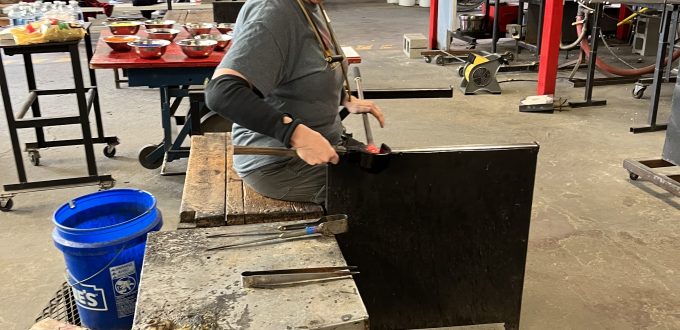 Andi Wolfe coordinates speakers for the meetings.  Andi creates wood-turnings, paintings, and glass objects.